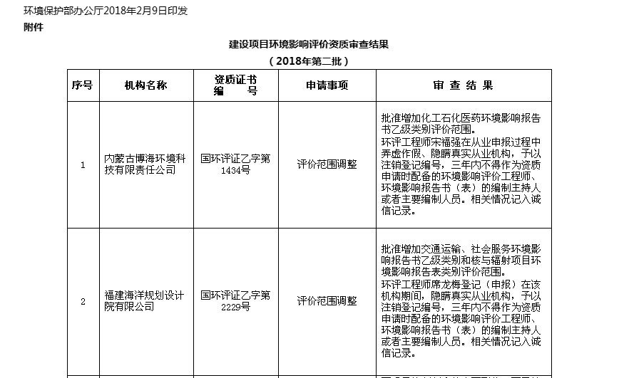 特大喜讯——公司环评资质评价范围调整通过环保部审批
